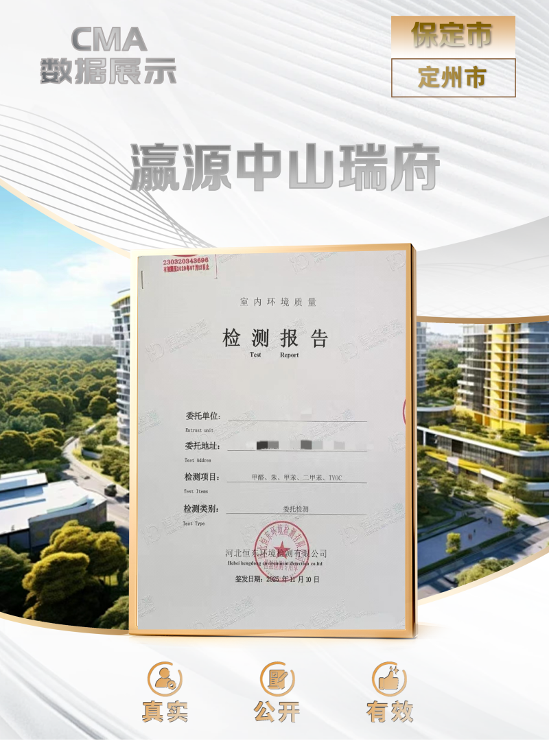 河北定州中山瑞府350㎡独栋别墅CMA验收检测报告