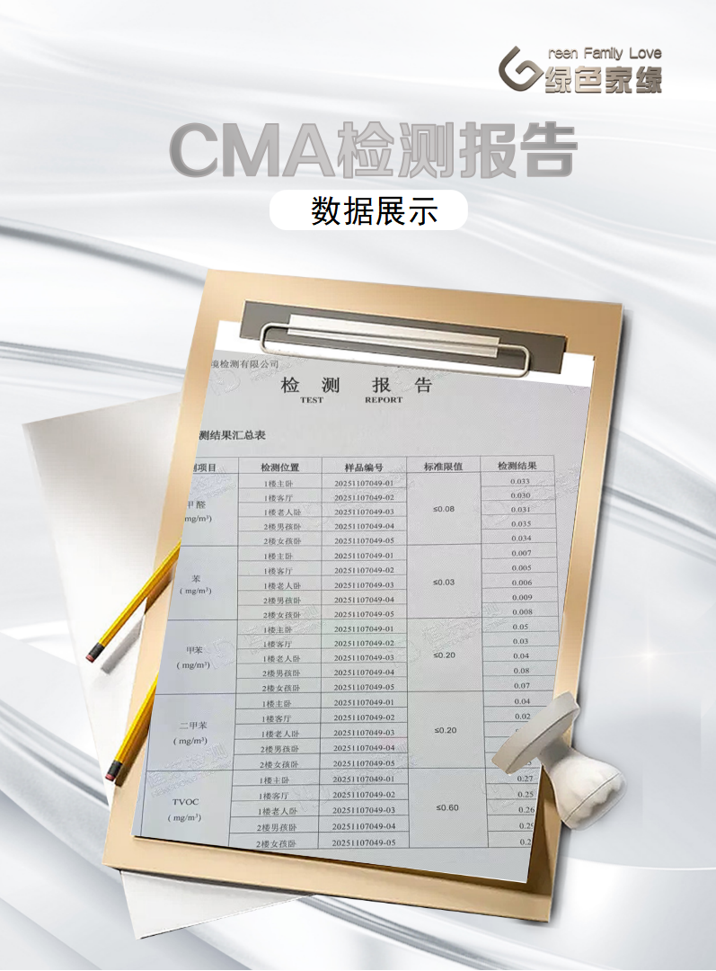 所有房间数值都远低于0.08mg/m³的国标限值,母婴级安全标准稳稳拿捏!