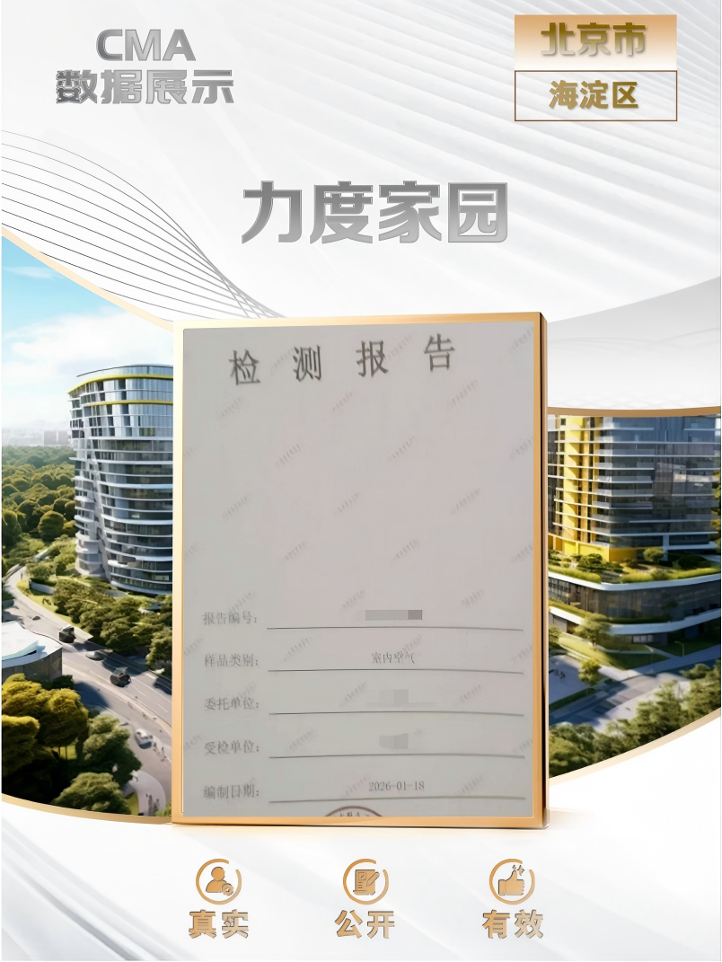 北京海淀力度家园家庭除甲醛CMA验收检测报告