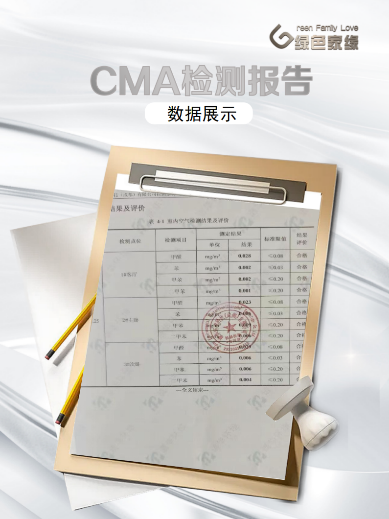 三项指标均显著低于国家标准限值(≤0.08 mg/m³),且数值稳定,验证治理方案对复合污染源的有效控制能力。绿色家缘全程支持用户自选检测机构,并提供检测费用补贴,践行“效果透明、数据可信”服务承诺。