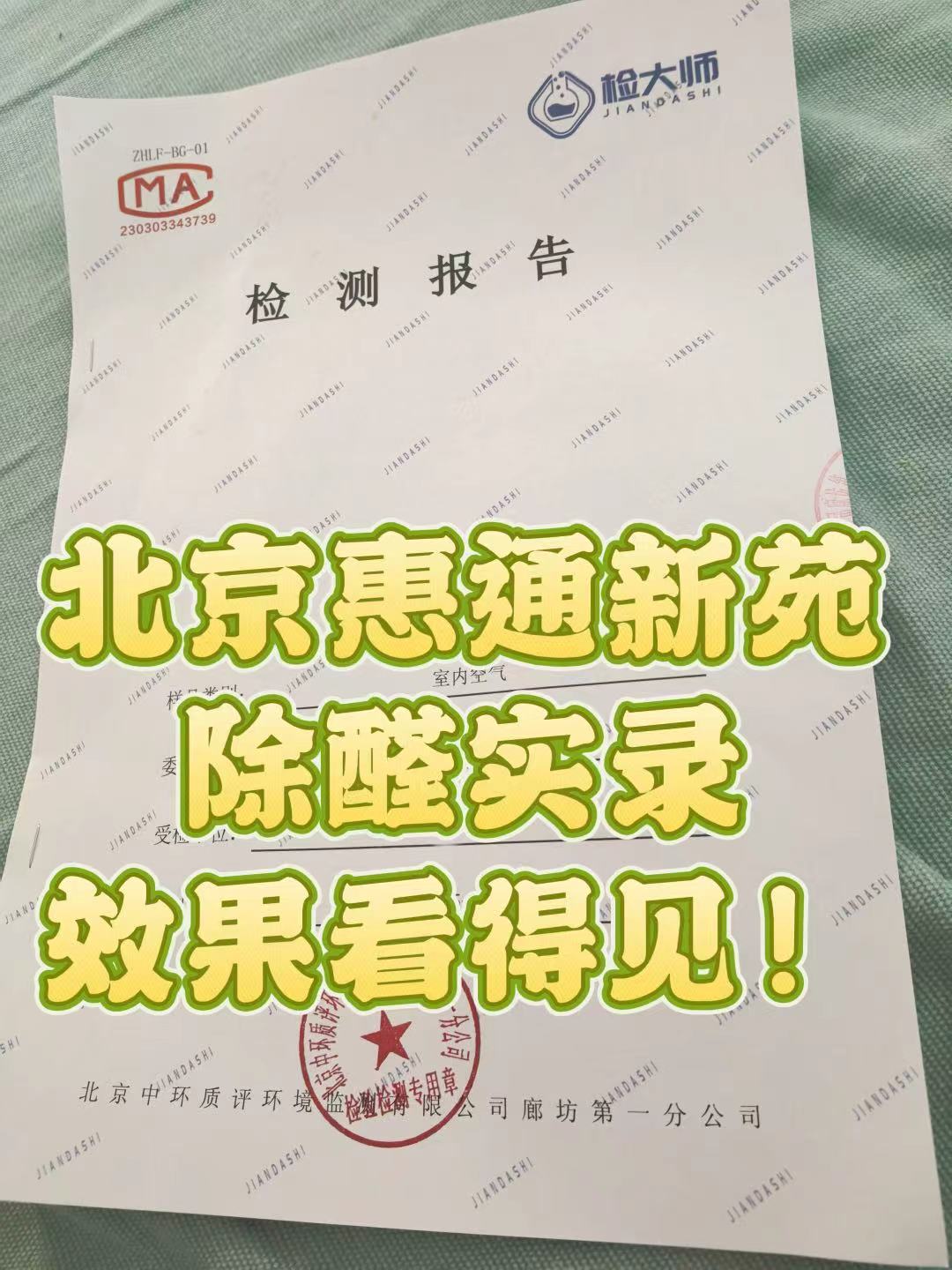 北京惠通新苑除醛案例、CMA验收报告