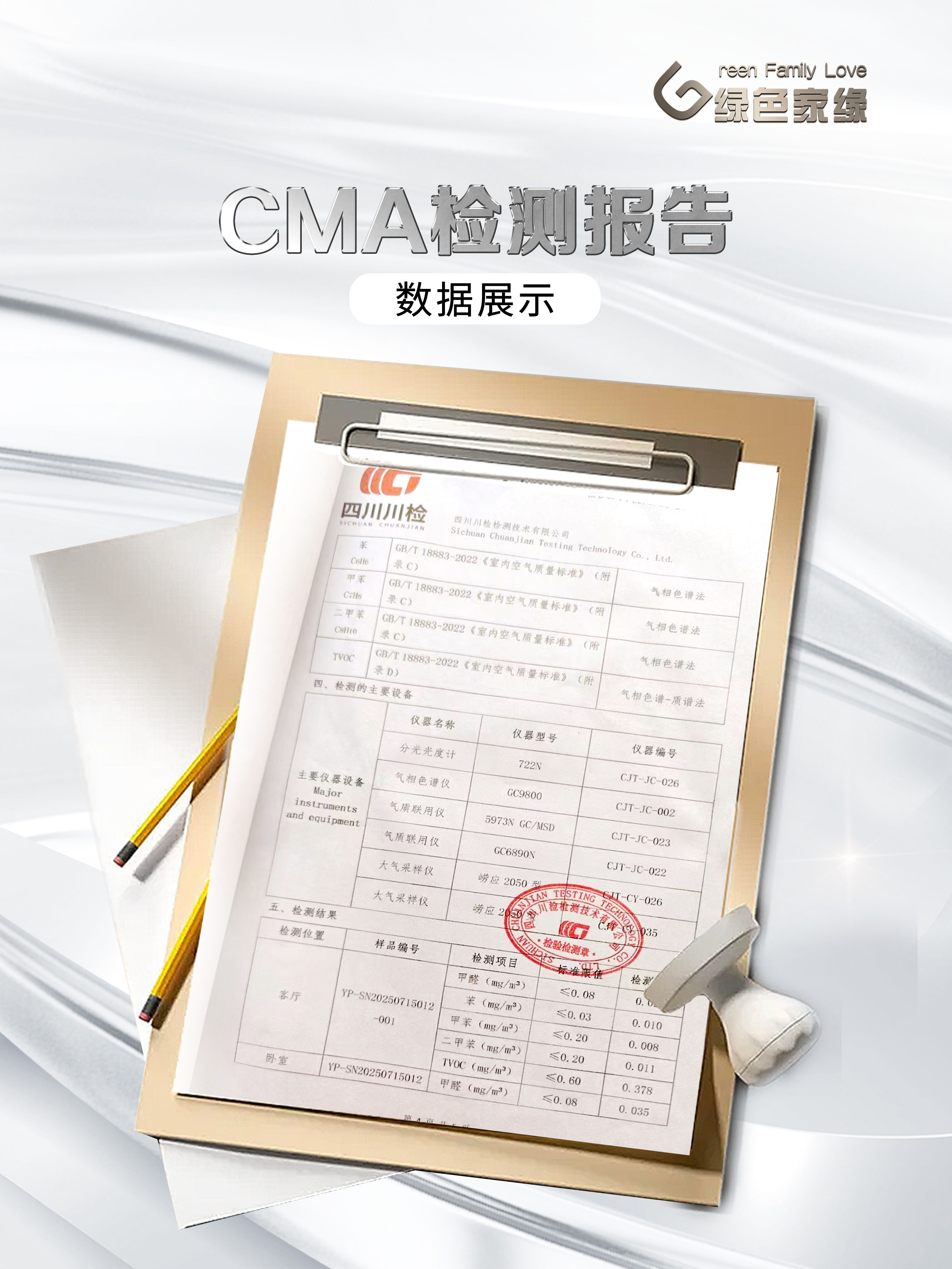 完工后我们帮业主联系了他自己选的第三方CMA机构,还补贴了检测费。等报告出来业主彻底松了口气:客厅甲醛0.020mg/m³,卧室0.035mg/m³,比国标0.08mg/m³低了一大截,给娃住太安心了!